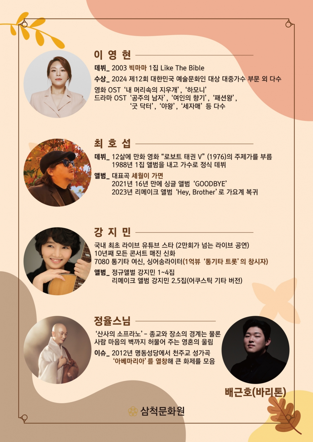 출연가수 : 이영현, 최호섭, 강지민, 정율스님, 바리톤 배근호, 박종명, 김이난