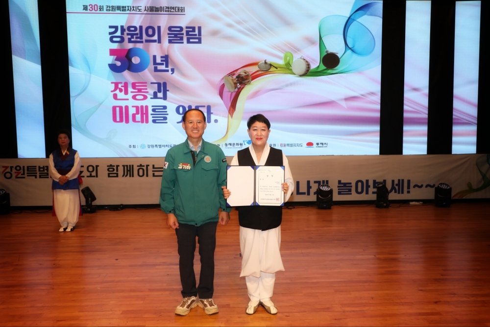 "강원의 울림 30년, 전통과 미래를 잇다"라는 슬로건으로 제30회 강원특별자치도 사물놀이경연대회가 9월 11일 목요일 동해문화예술회관에서 열렸다.